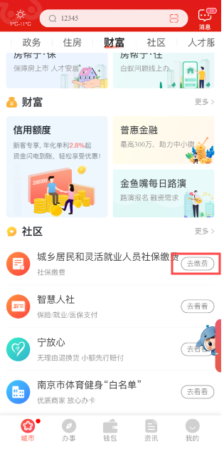 1.“我的南京”APP缴费