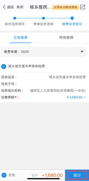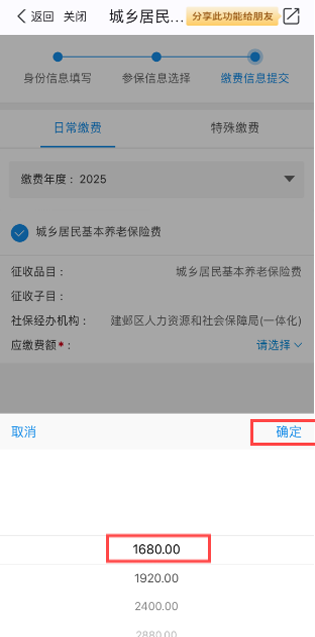 2025年城乡居保缴费标准