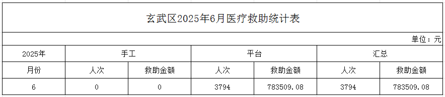 信息名称: | 南京市玄武区2025年6月医疗救助统计表 | ||