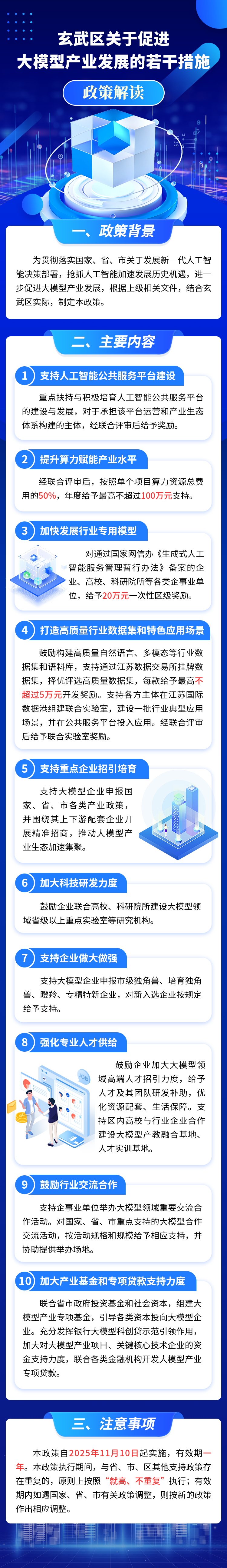 | 信息名称: | 《玄武区关于促进大模型产业发展的若干措施》图解 | ||