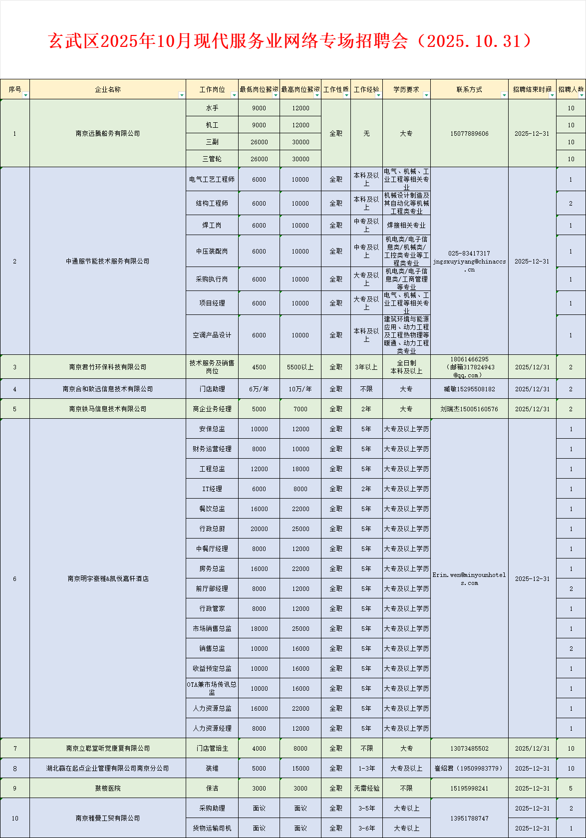 | 信息名称: | 玄武区2025年10月现代服务业网络专场招聘会(2025.10.31) | ||