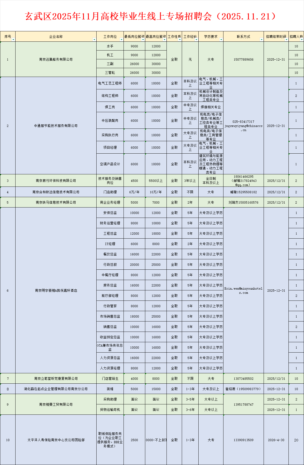 | 信息名称: | 玄武区2025年11月高校毕业生线上专场招聘会(2025.11.21) | ||