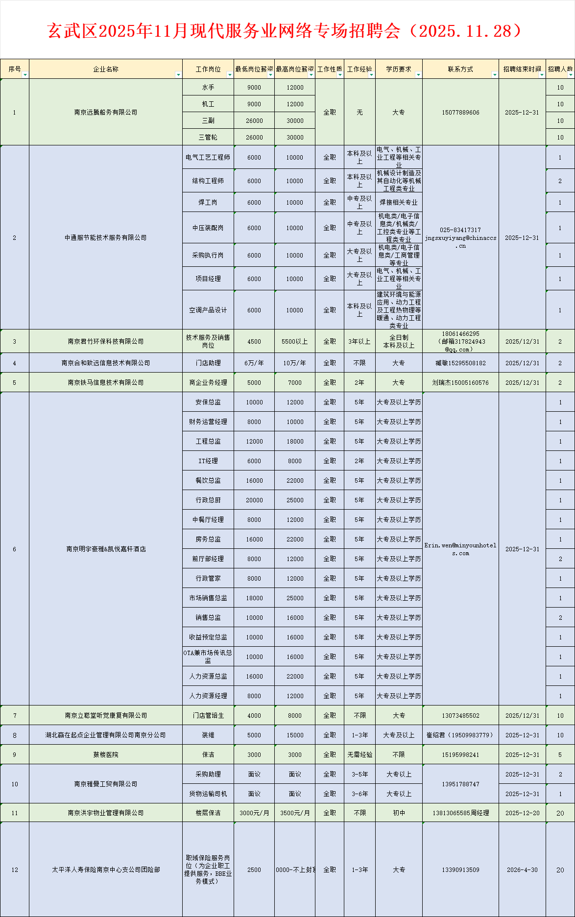 | 信息名称: | 玄武区2025年11月现代服务业网络专场招聘会(2025.11.28) | ||