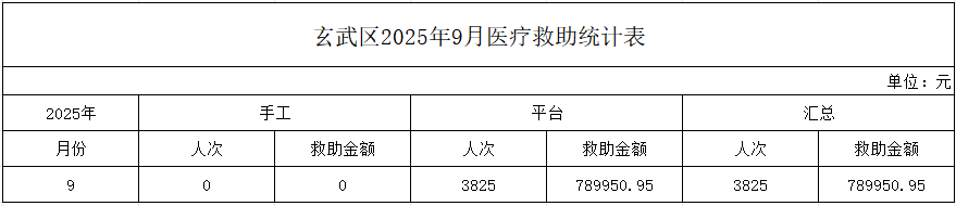 | 信息名称: | 南京市玄武区2025年9月医疗救助统计表 | ||