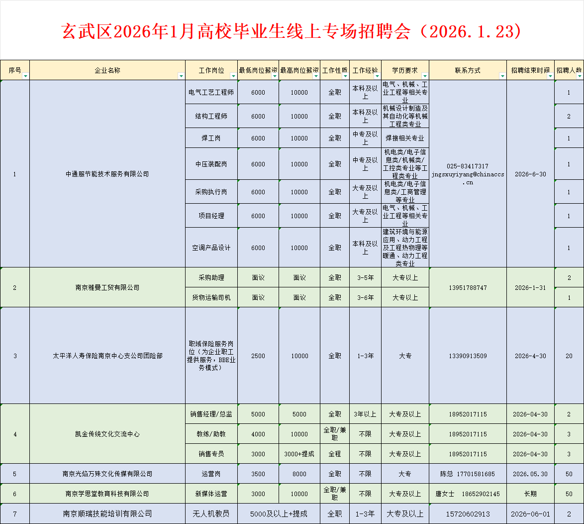 | 信息名称: | 玄武区2026年1月高校毕业生线上专场招聘会(2026.1.23) | ||