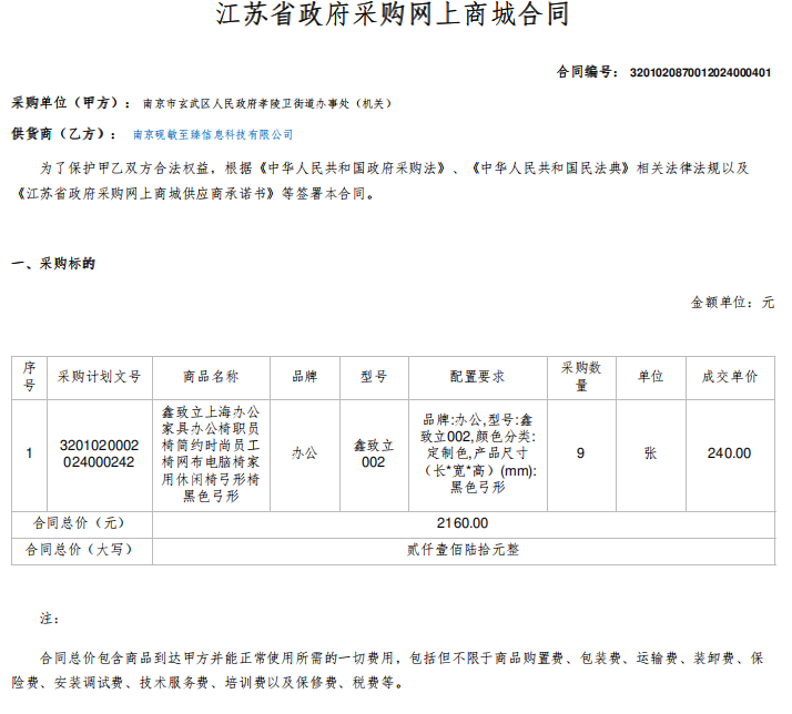 | 信息名称: | 孝陵卫街道办事处关于采购一批办公椅的公示 | ||