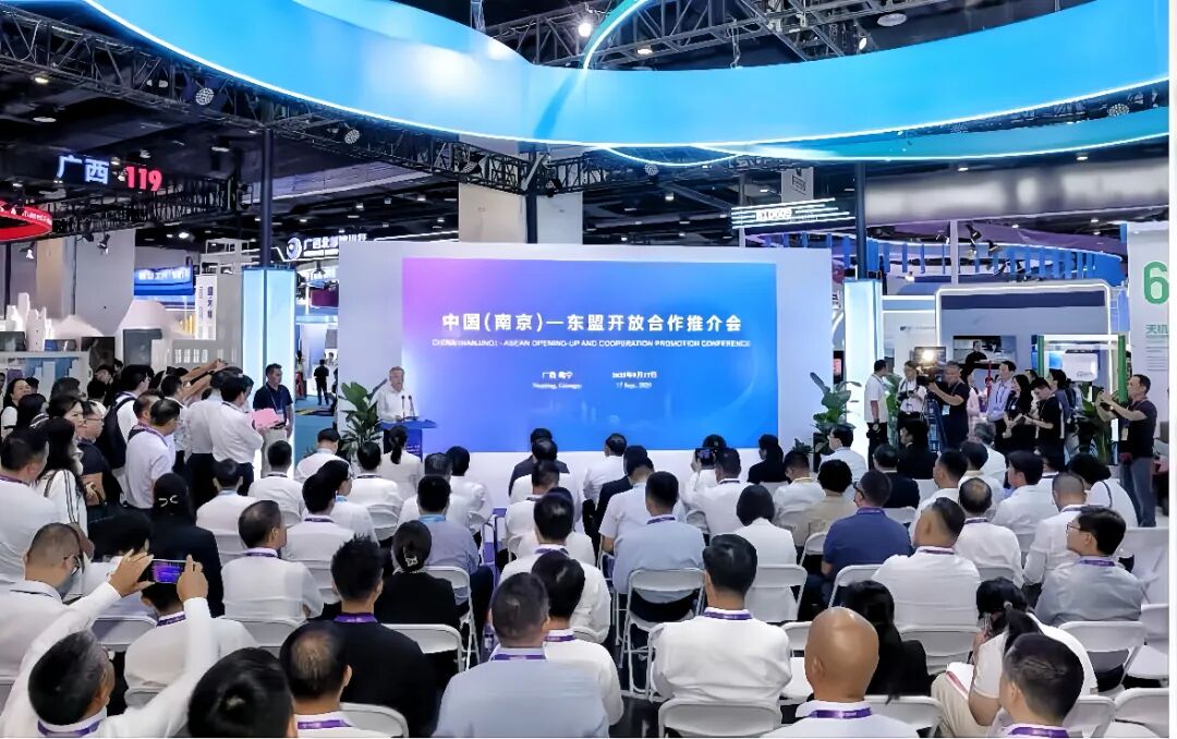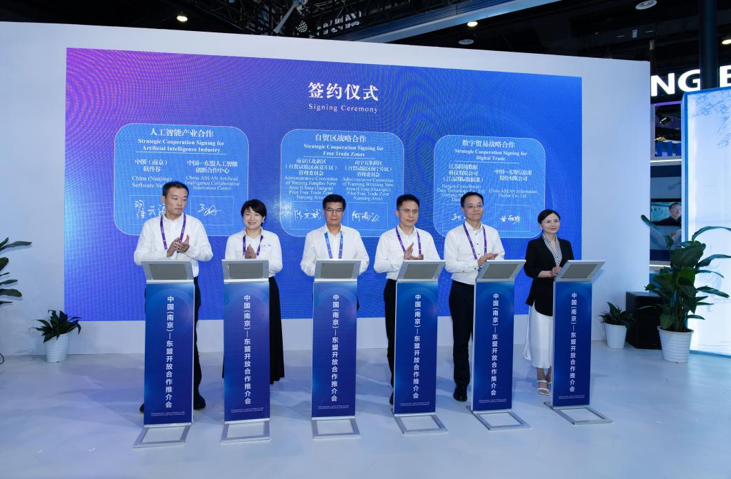在本届东博会的中国(南京)—东盟开放合作推介会现场,江苏国际数据港与中国东信正式签署数字贸易战略合作协议,为江苏企业利用广西通道优势“借船出海”、助力广西借助江苏产业优势“引资聚智”搭建核心桥梁。