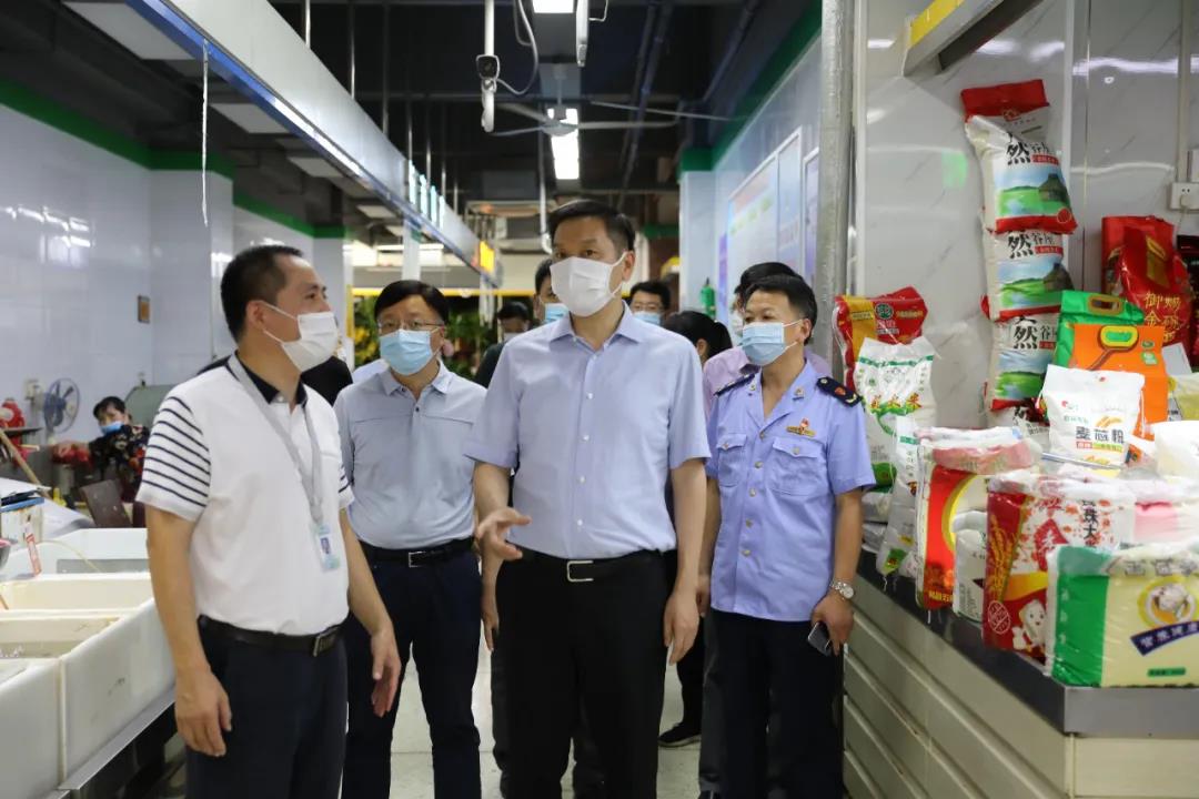 8月14日,区委书记闵一峰先后来到香铺营农贸市场、金润发超市、九华饭店,深入一线、现场检查常态化疫情防控工作。区委常委马千山参加。 在香铺营农贸市场,闵一峰重点察看了生鲜、冷冻、水产销售区域。他强调,农贸市场防控要坚持“预防为主、重在日常”,对市场内的生鲜冷冻食品,务必追踪溯源,摸清销售渠道,区市场监督管理局要联合区疾控中心定期做好销售食品和从业人员的监测工作,全力确保食品安全和环境整洁。