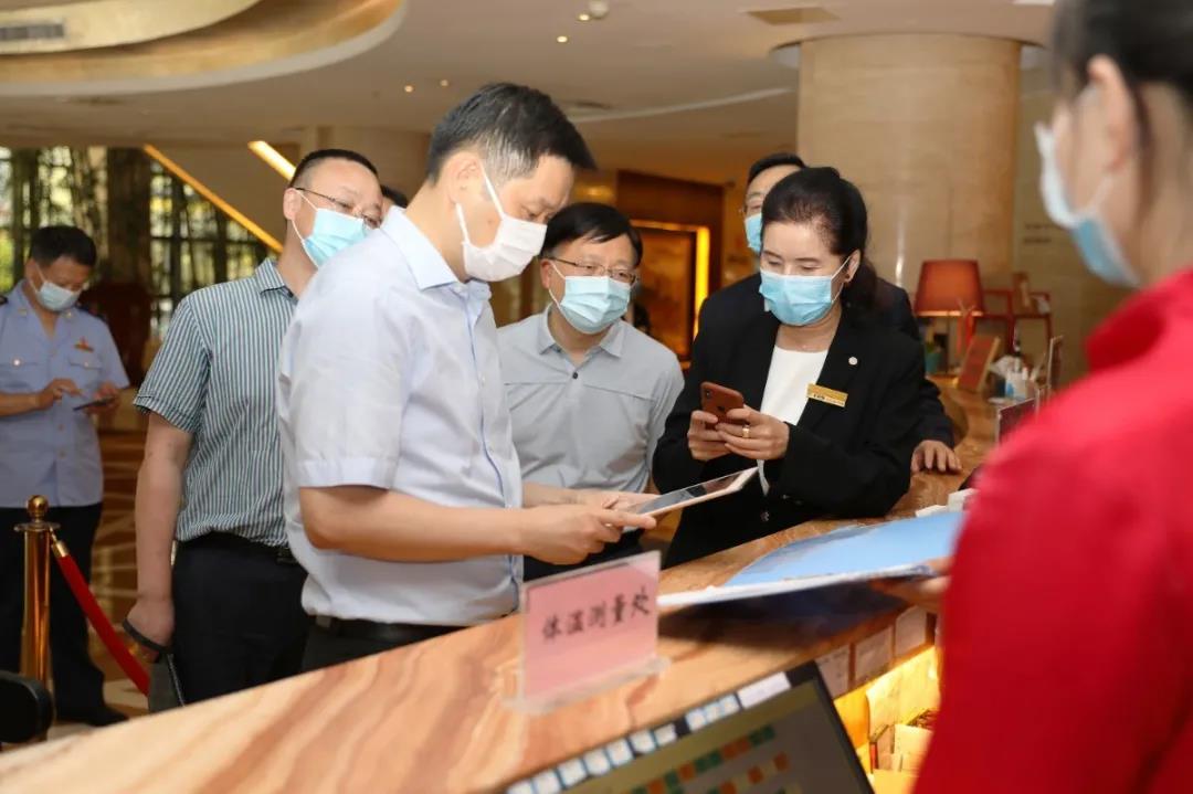 在九华饭店,闵一峰要求继续做好员工核酸检测、核验住客“苏康码”等工作,加强日常消杀和应急处置,确保餐饮安全卫生。