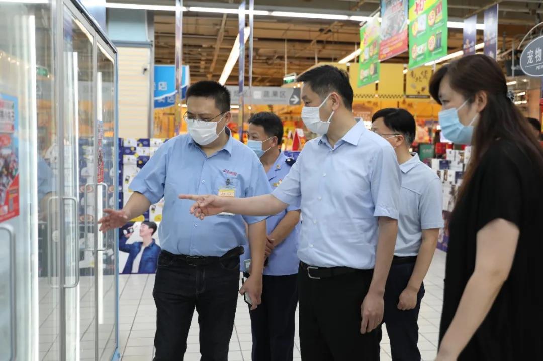 在金润发超市,闵一峰详细了解了卖场营业情况,重点察看了生鲜食品区域,仔细询问了冷库日常运行和防疫措施落实等情况。