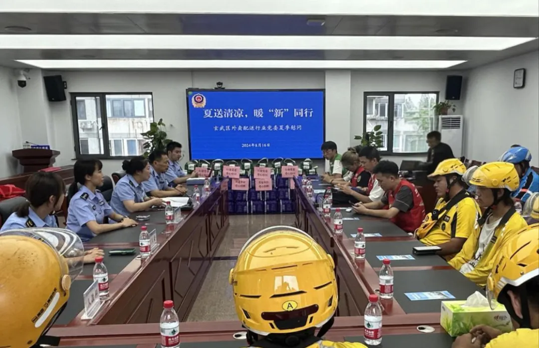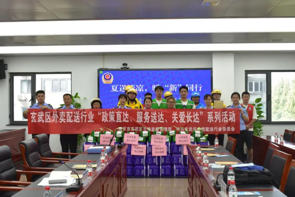 为做好高温天气下对外卖配送骑手的关心关爱工作,近日,玄武区市场监管局开展“夏送清凉,暖‘新’同行”夏季慰问外卖配送骑手活动,共建单位交警一大队、江苏太古可口可乐公司和辖区内美团、饿了么、叮咚买菜平台近20名骑手代表参加本次活动。