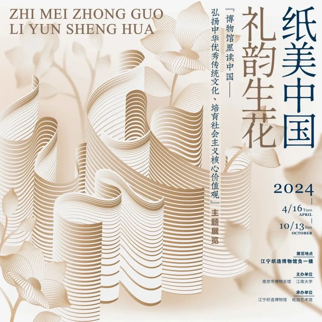 展览的诸多创新实践,是江宁织造博物馆对中华优秀传统文化的创造性转化和创新性发展的积极推动,将纸赋予了中华礼韵文化故事,呈现给观众一场纸与礼与花的饕餮文化盛宴。 在安静惬意的环境中,沉浸式感受“纸”的魅力。一起去看看吧。 展览名称 纸美中国 礼韵生花 展览时间 2024年4月16日至10月13日 周二至周日9:00——17:30(17:00停止售票) 每周一闭馆,逢节假日开放 展览地点 江宁织造博物馆负一楼临展一厅(玄武区长江路123号) | |||||