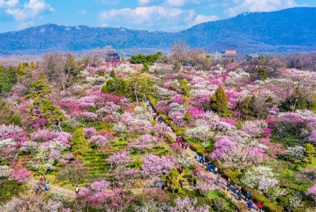 梅花山有“天下第一梅山”美誉,拥有梅花品种380余个。 2024年4月12日,经过国际登录评审会的认定,“钟山绯红”“粉黛”“钟山丽蕊”等18个梅花新品种一致通过,取得国际登录证书。自此,南京梅花山共进行了7次梅新品种国际登录,累计登录梅花品种155个。 春天来了,梅枝上鼓起小小的花苞,像等待发令的跑者,在料峭中积蓄力量。今天,和小编共赏一次“有文化”的梅。