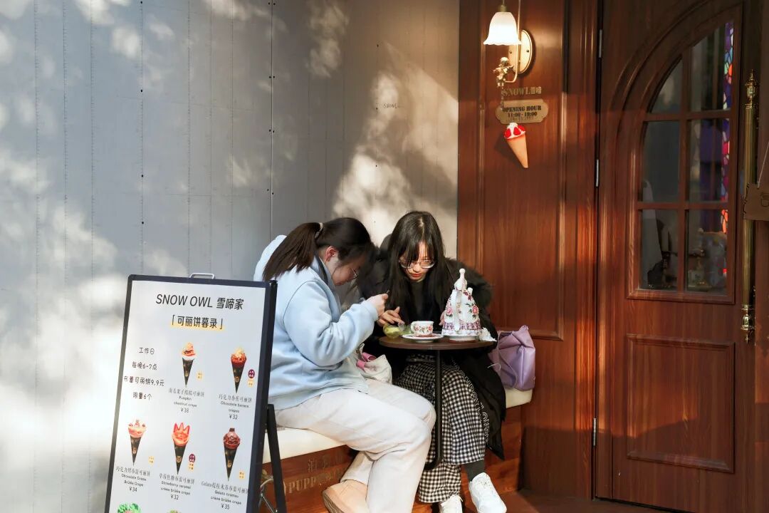 咖啡馆、甜品店等街边小店可以说是年轻人“猫冬”的温暖小世界,在洪武北路这条老街的咖啡店内外随处可见来这“猫”起来的小年轻。